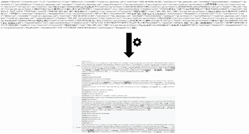 为了让数据更加简洁,首先将两个云厂商操作日志进行统一,对于AWS日志,因为CloudTrail会将多个日志放到同一个字段中,因此这里对日志进行了拆分,并标记成来自aws。