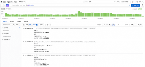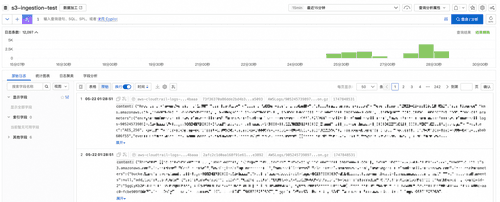 从任务概览界面点击目标logstore或者从左侧边栏点击logstore,进入logstore查看导入数据。最终导入结果如下图所示