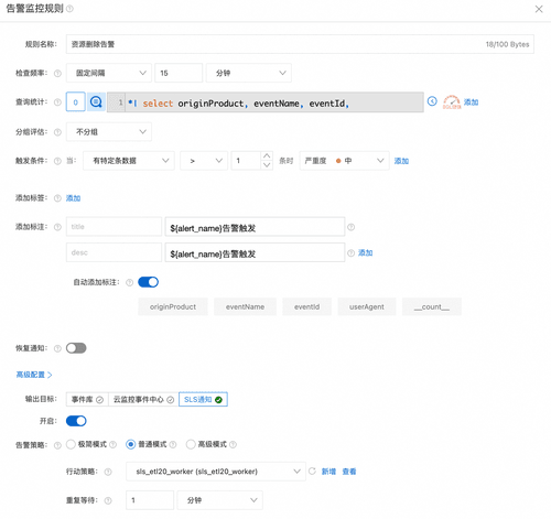 更进一步,接下来监控对云资源的敏感操作,并进行告警,以及时对我们进行提示。