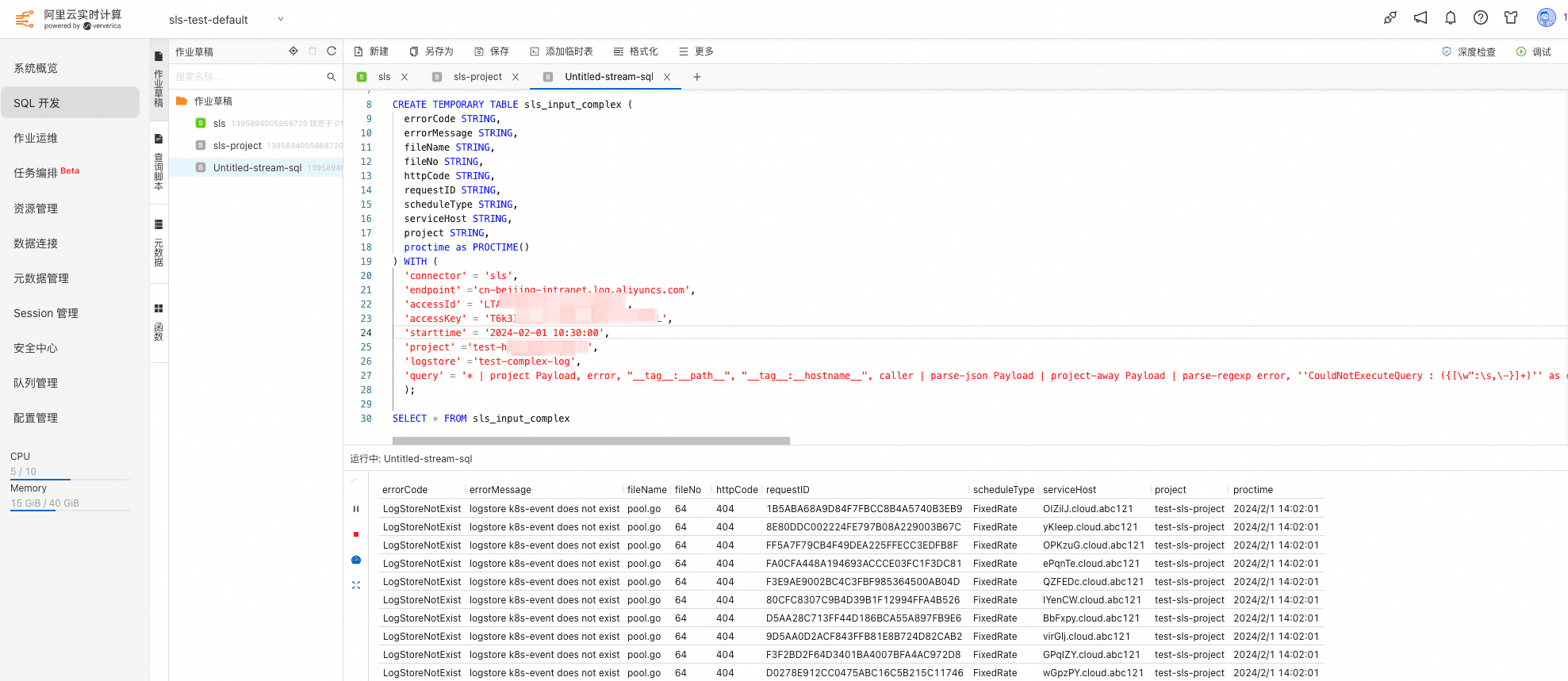 - 开通SLS,在SLS创建Project,Logstore,并创建具有消费Logstore的权限的账号AK/SK。