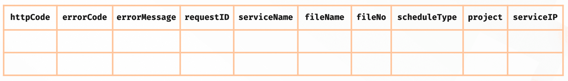 | project httpCode, errorCode,errorMessage,requestID,fileName, fileNo, serviceHost,scheduleType, project