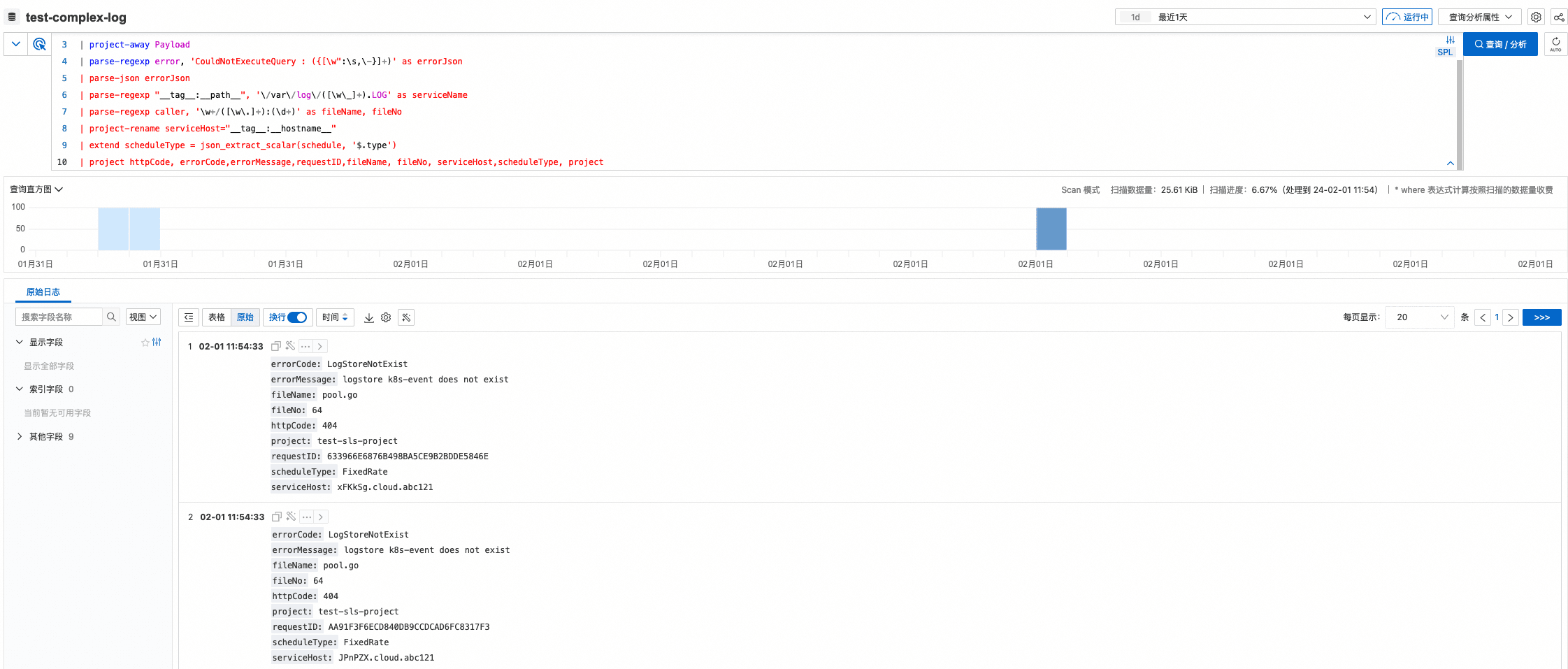 同时为了便于SPL验证测试,SLS 扫描查询也已支持使用SPL进行查询,可以实时看到SPL管道式语法执行结果。