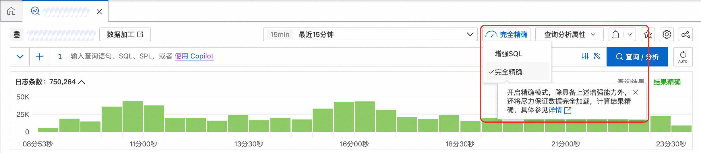 在首次启用完全精确模式时,建议先对小规模数据集(如选取小段时间)进行测试,验证查询逻辑的正确性和性能表现。待确认无误后,再扩展至更大范围和规模的数据分析任务。 - 合理设置最大执行时间