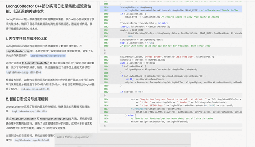 LoongCollector 以高性能、低延迟著称,当你向 DeepWiki 询问探究技术原理的时候,DeepWiki 可以结合代码给出准确的解答。