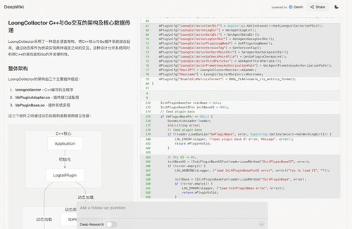 LoongCollector 提供了 Go 语言插件的可扩展性,通过向 DeepWiki 提问,开发者可以了解更深层次的 C++/Go 交互原理。