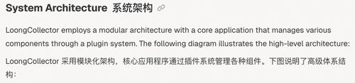 DeepWiki 通过 AI 自动解析 LoongCollector 的系统架构,并以模块化架构图的形式呈现,帮助开发者掌握全局脉络。