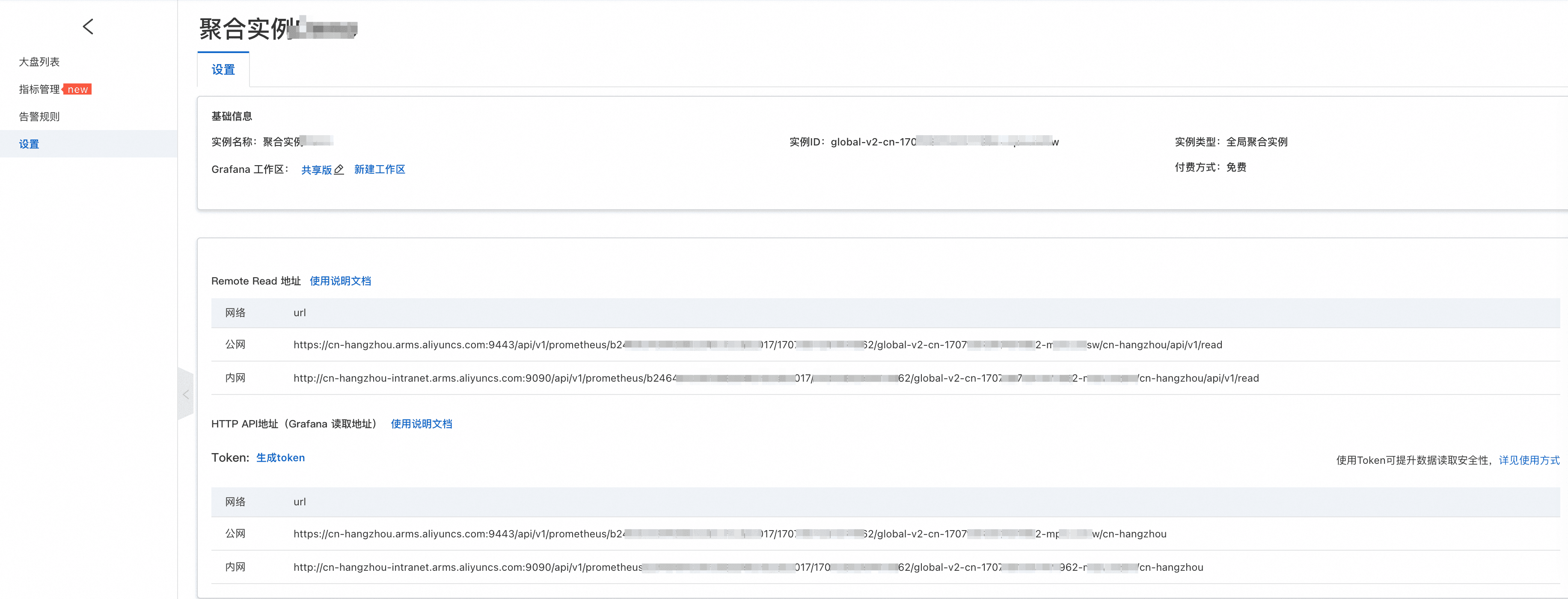 | 全局聚合查询 | 通过自建Thanos实现“物理聚合”,部署和运维成本高,灵活性低。 | 提供[全局聚合实例](https://help.aliyun.com/zh/prometheus/use-cases/unified-multi-account-monitoring-based-on-prometheus-global-aggregation-instance)能力,支持多个Prometheus实例数据的高性能的动态聚合查询、大盘展示和告警。 |