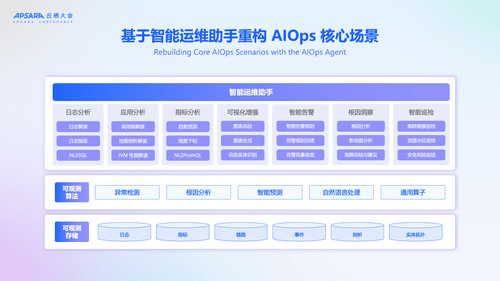 - 最顶层,诞生了全新的 AIOps Agent 形态,以及丰富的智能探索场景,将运维带入了自然语言对话的新形态。