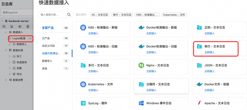 LoongCollector作为一款轻量级日志采集工具,支持采集主机文本日志、Kubernetes集群容器日志、HTTP数据等不同的数据源,当前Copilot Demo 日志以JSON格式打印在主机日志目录中,此处接入单行文本日志即可: