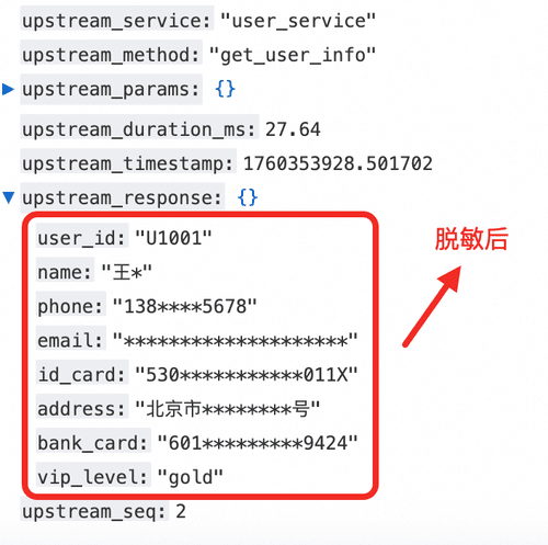 需要核对用户身份时,日志里只保留了 脱敏后的银行卡号、手机号等信息,足以和业务侧“同一用户”比对,而不会暴露原值。即便是跨团队协查,也能直接在脱敏日志上定位问题,避免泄露风险。
