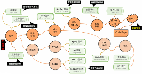 面对这一挑战,我们的解决思路是:将“图”(Graph)作为可观测数据模型的重要组成。我们认为,系统的真实形态本就是一张图,那么对它的查询和分析,也应该使用最符合其本质的方式——图查询。