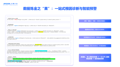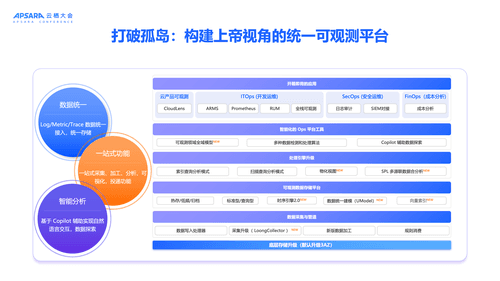 为了支撑上述理念,我们打造了端到端的一站式可观测平台日志服务 SLS。它的核心愿景是:提供一个“上帝视角”——所有你需要的数据,都在同一个地方,随时可查、可联、可析。这意味着:不再需要在多个系统间跳转拼接;一条查询语句即可横跨日志、指标、调用链完成关联分析;分析过程无需手动整合,平台自动完成上下文对齐与语义打通。这不是一次简单的功能升级,而是一场思维方式的根本变革。我们正从“规则驱动”的自动化时代,迈向“数据驱动 + AI增强”的智能时代。在这个过程中,数据不再是被动记录的结果,而是主动创造价值的源泉。未来属于那些能够更快感知、更深理解、更早预见的企业。而我们所构建的,正是这样一个让组织具备“数字第六感”的智能基础设施。