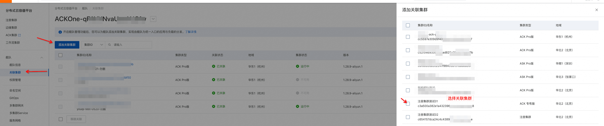 步骤二:将目标集群纳管到注册集群。