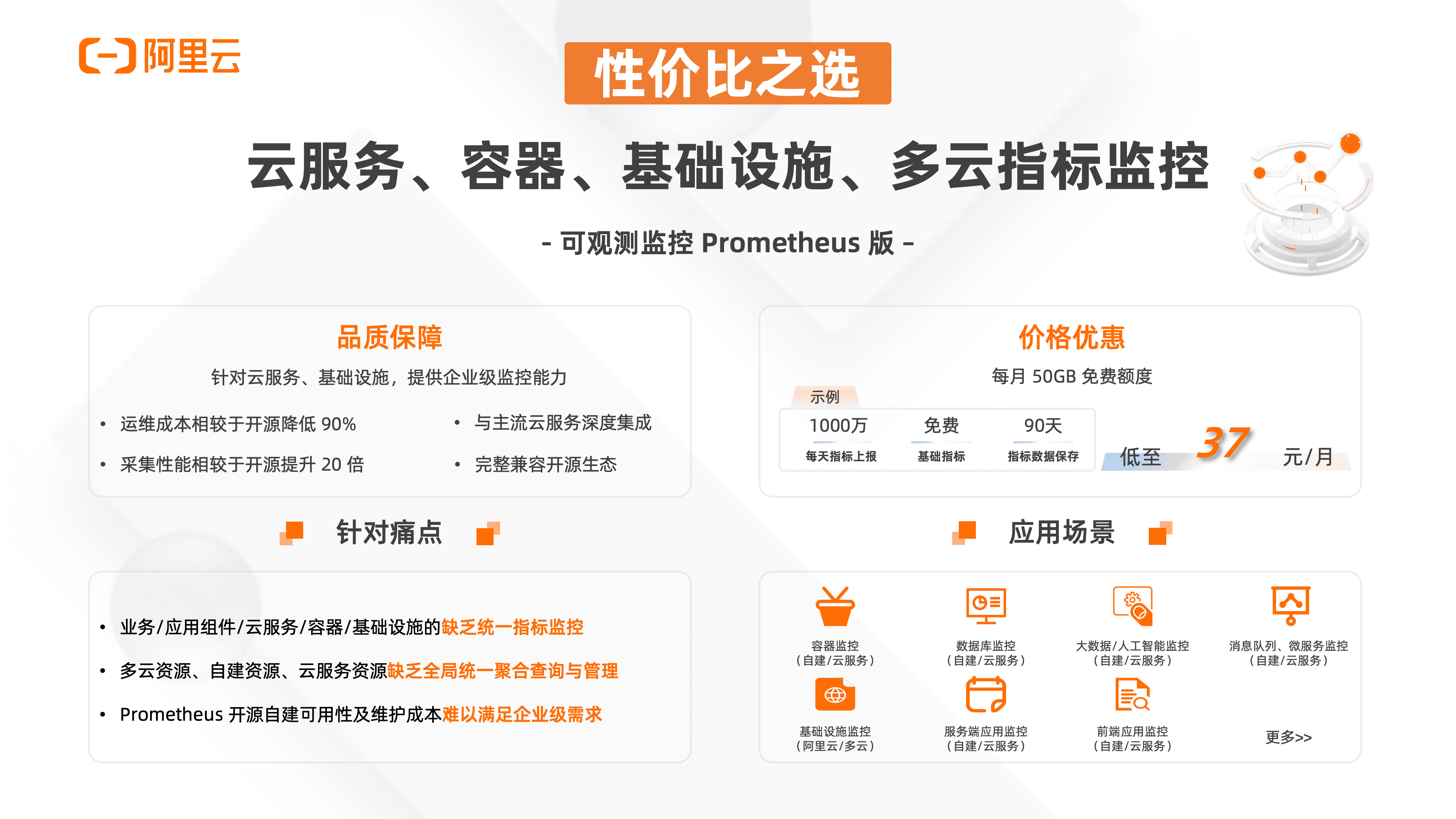 - 一站式服务与生态集成:集成阿里云丰富的云产品和服务生态,便于与其他云服务如日志服务、告警服务等无缝对接,实现从监控、报警到故障排查的一站式解决方案,加速问题定位和解决速度。