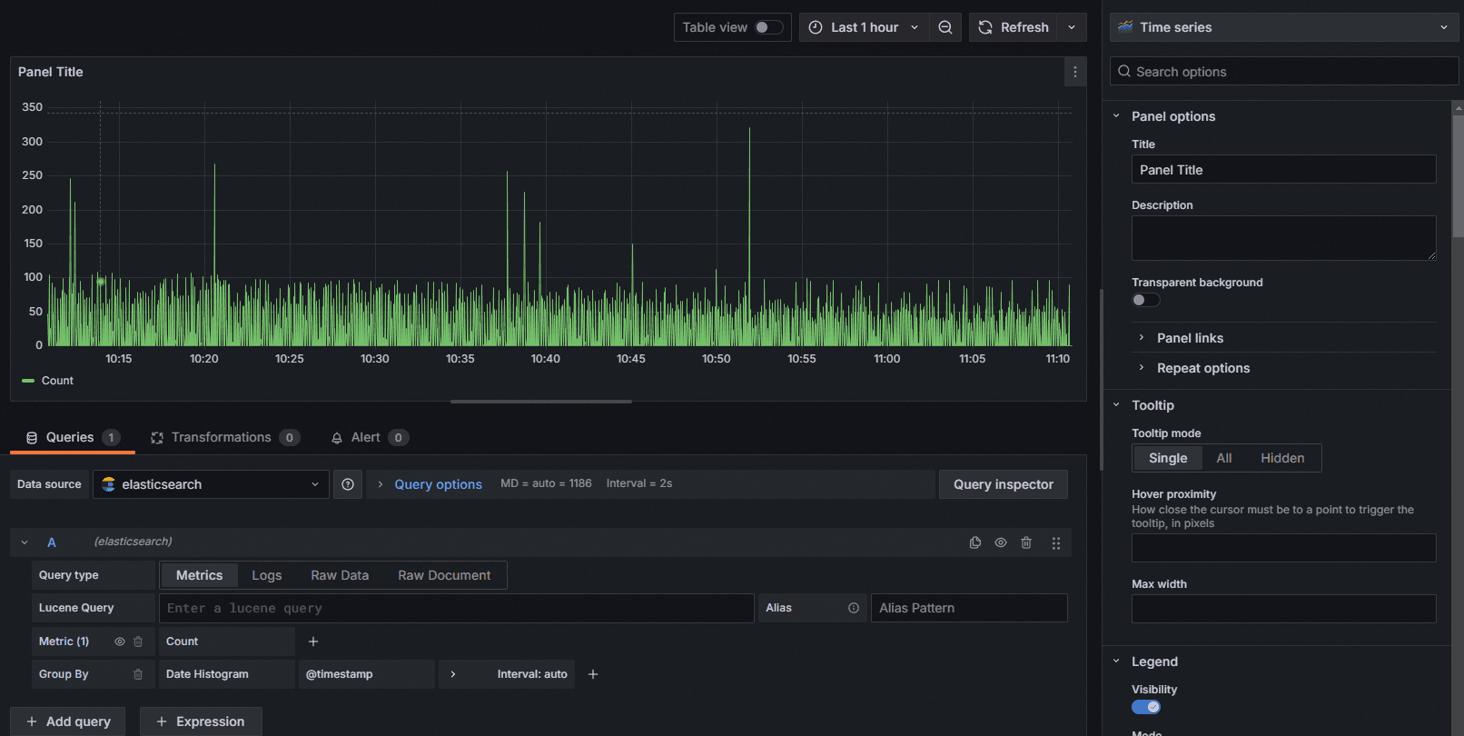 **示例 1:使用**ES Lucene的语法,在Grafana中绘制QPS趋势曲线,访问存储在SLS的数据