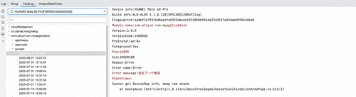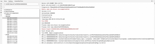 同样地,在 DevEco Studio 的 FaultLog 中可以获取到异常堆栈。