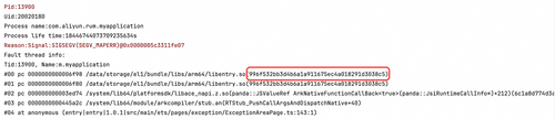 可以看到堆栈中的文件 UUID 信息和通过 shell 命令获取到的so文件的 UUID 是相对应的,代表可以进一步正确解析。