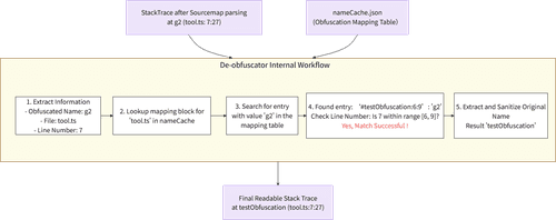 我们可以将反混淆解析视为 Sourcemap 解析之后的第二阶段精加工。Sourcemap 解决了“在哪里”的问题(文件名和行号),而反混淆则解决了“是什么”的问题(函数和变量名)。