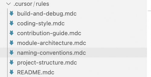 - 版本化管理:所有 Cursor Rules 存储在代码仓库的 ./cursor/rules 目录下,和源代码一样进行版本管理与代码评审;