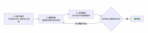 规则应指导 AI 遵循一个清晰的工作流:首先分析源代码和现有测试,然后设计 Mock 策略,接着基于模板和规则生成或优化代码,最后必须运行测试进行验证。