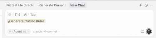 可以使用 cursor 的命令 /Generate Cursor Rules 命令生成 cursor rule,再进行微调。可以直接将 /Generate Cursor Rules 输入给 cursor,它会自动生成包含上下文等的工程相关 rule。也可以在命令后指定要生成的命令格式。