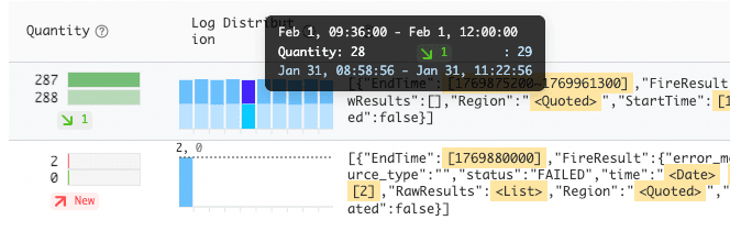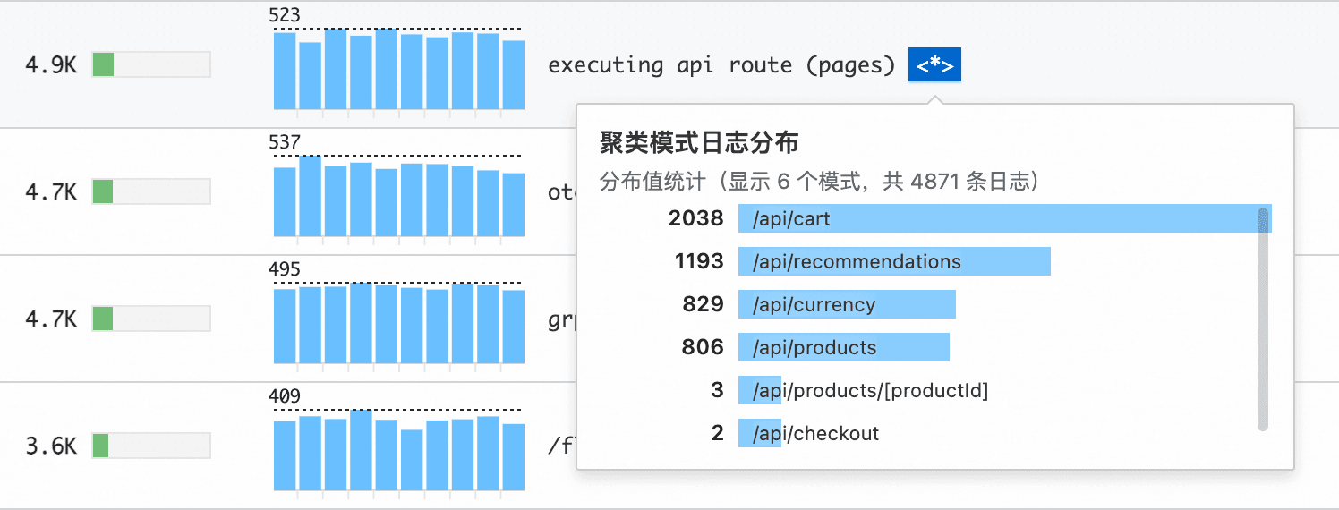 - 浅色柱状图:对比时间范围(对比组)的日志数量
