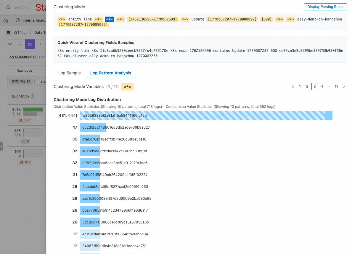 通过这种抽象,原本需要逐条查看的成千上万条日志,被压缩为少数几个日志类别。工程师可以先在日志模板层面定位问题,然后再深入查看具体日志样例——这正是新版日志聚类带来的认知升级。