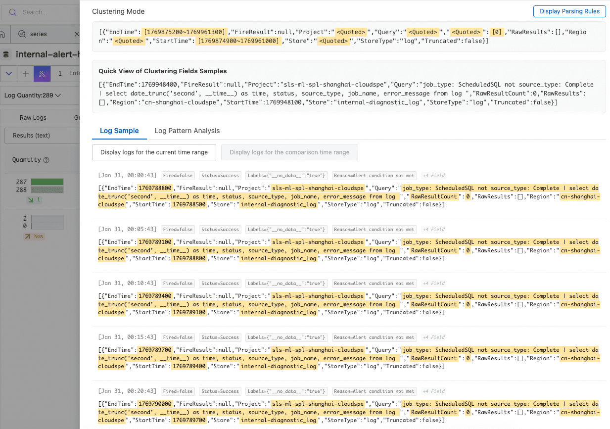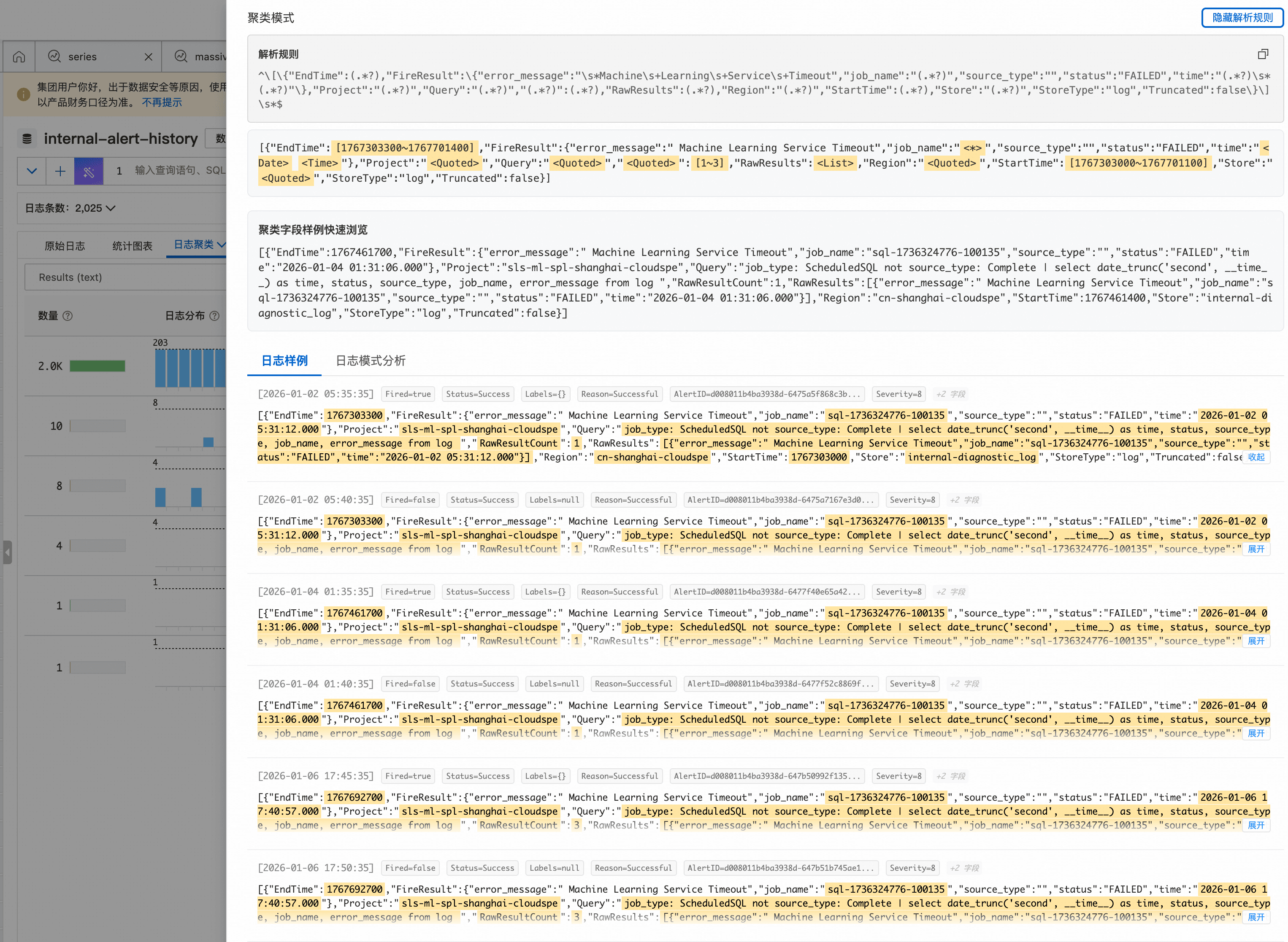 - 对于可疑的新模式,点击查看日志样例进一步分析