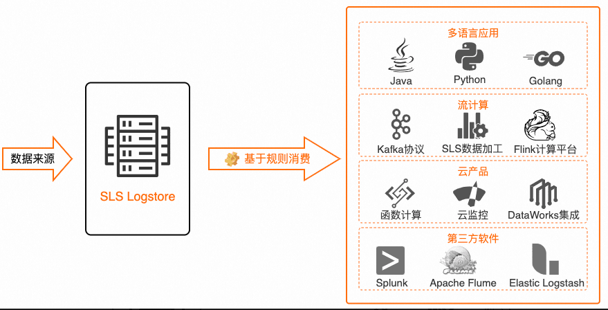 当前SLS基于规则消费已经与阿里云Flink、Dataworks、Splunk、FunctionCompute等数据日志消费类产品完成对接,在对应平台上可以无缝使用SPL进行日志数据的预处理,将处理清洗后的数据交给云产品进行数据分析。同时,SLS的多语言SDK包括Java、Python、Golang等已完成基于规则消费的适配,实时消费接口与消费组接口可以直接配置SPL进行日志数据预处理。