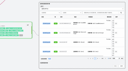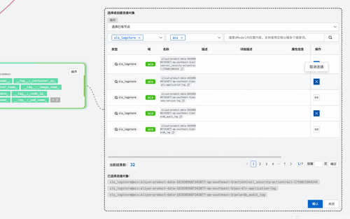 第一种是批量连接模式。当用户从一个节点开始连线,但拖动到画布空白区域时,会弹出一个"选择或创建链接对象"的虚拟节点对话框。在这个对话框中,用户可以搜索并选择多个已有的节点,一次性创建多条边。这对于需要将一个节点连接到多个节点的情况特别有用。例如,一个 entity_set 可能需要同时连接到多个 metric_set,使用批量连接模式可以一次性完成所有连接。