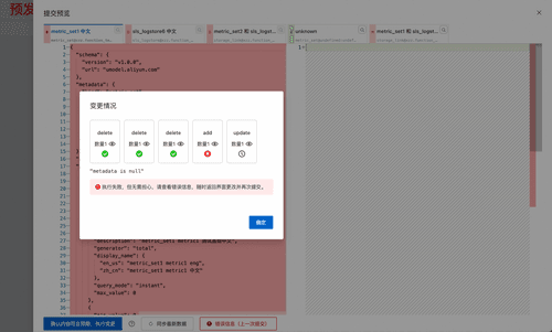 如果所有变更都符合预期,点击"执行变更"按钮,系统会开始批量提交。提交会按照删除、添加、修改的顺序执行,删除操作每次只提交一个元素(最保守的策略),添加和修改操作每次批量提交 10 个元素。如果某个批次执行失败,后续批次会停止执行,并显示详细的错误信息。用户可以根据错误信息修正问题后,重新提交剩余的变更。