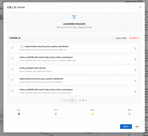 - 支持上传规范的UModel 文件,包含 JSON 和 YAML 格式。