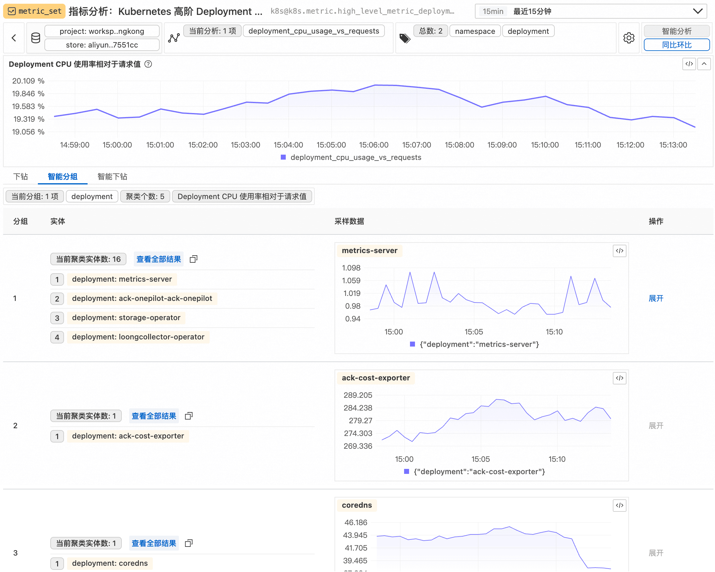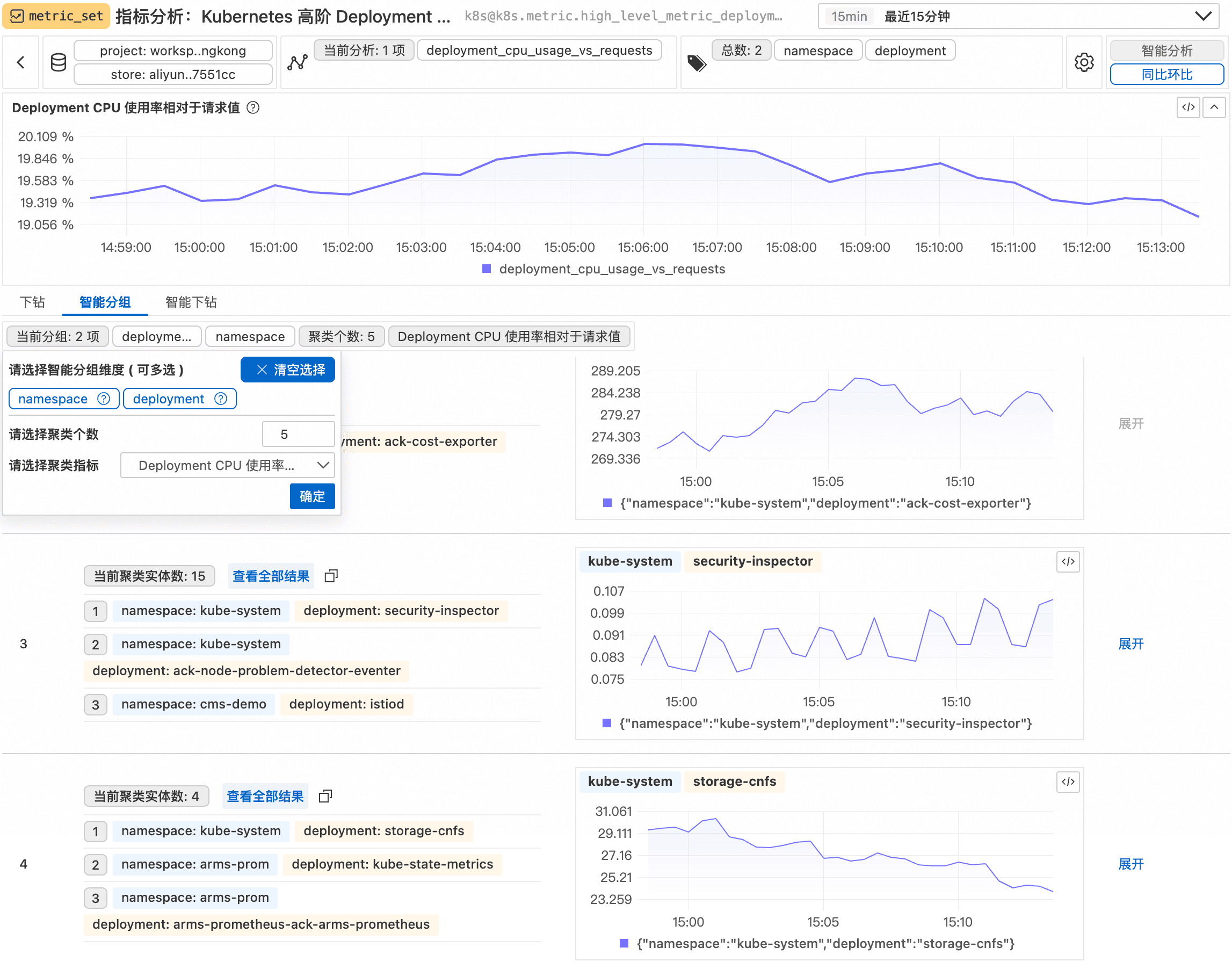 这个功能在容量规划、资源优化场景下特别有价值。比如分析大量实例的 CPU 使用率时,通过智能分组可以快速识别出高负载、中负载和低负载三类实例,进而针对性地进行资源调整。