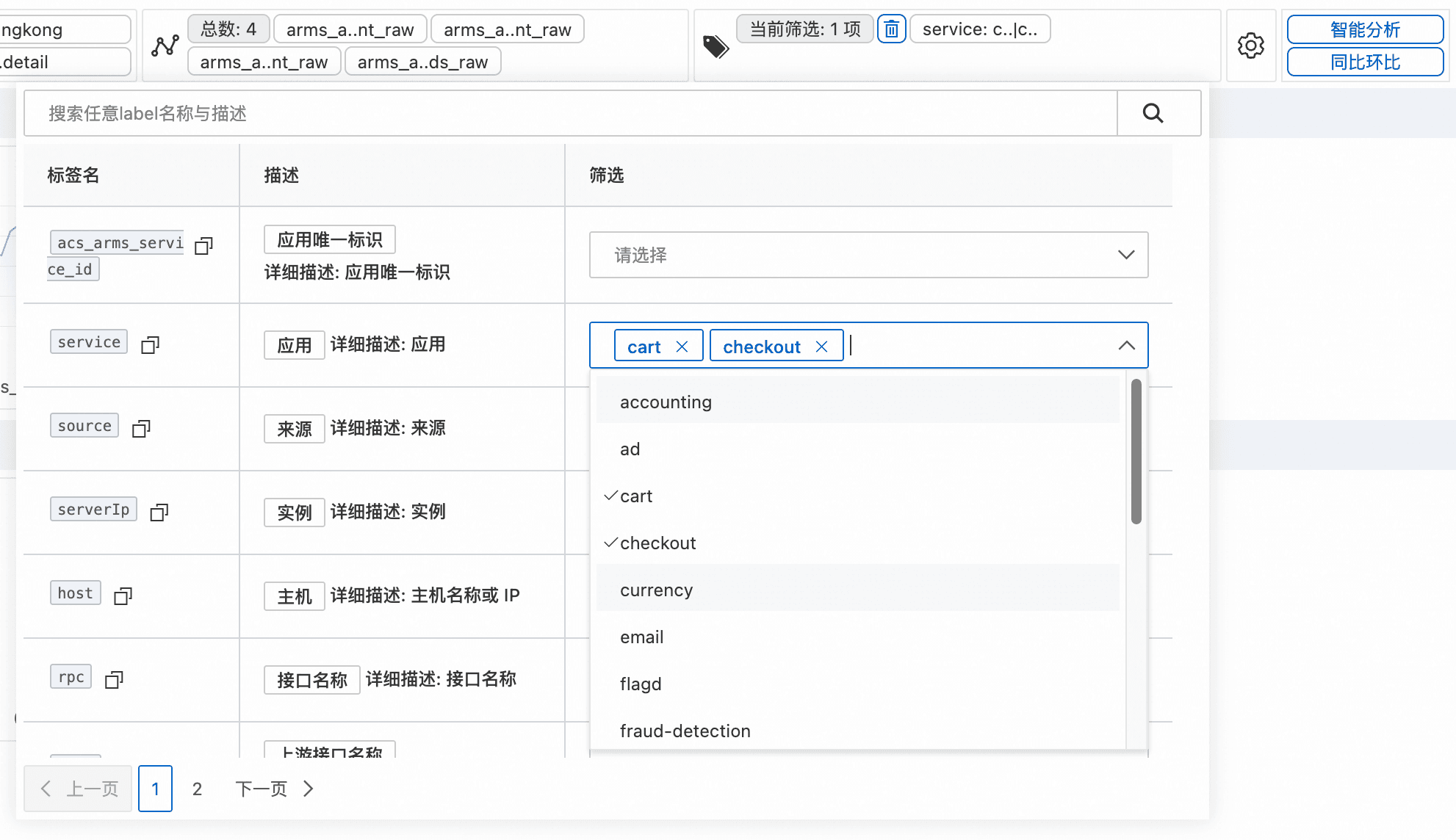 标签过滤器是一个强大但易用的功能。在可观测性领域,标签(Label)是数据的核心维度,比如服务名、地域、实例 ID 等。MetricSet Explorer 的全局标签过滤器能够同时作用于所有指标,让用户可以轻松聚焦到特定范围的数据上。
