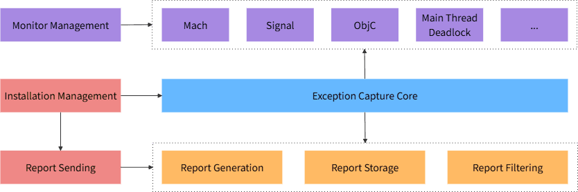 - 报告系统:生成详细的崩溃报告,进行本地存储和数据过滤