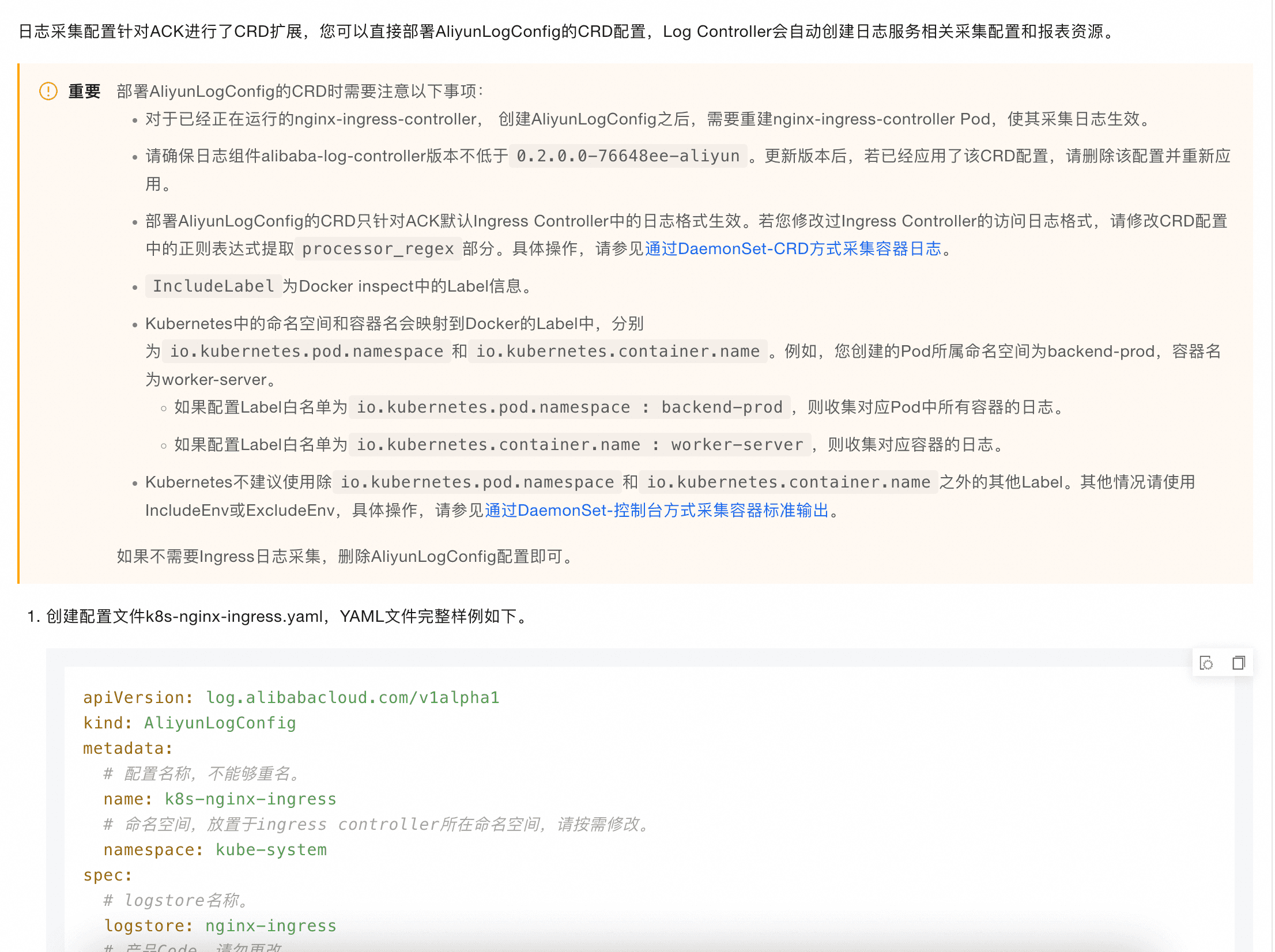 总的来说,AliyunLogConfig作为管理采集配置的CRD,可以满足基本的功能需求,且可以支持一些复杂场景。